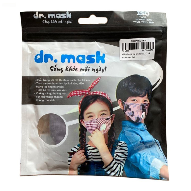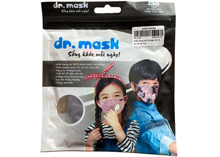 - Khẩu trang vải 3D trẻ em có van thở Dr. Mask sử dụng nguyên liệu nhập khẩu cao cấp, không mùi, thông thoáng, tạo cảm giác thoải mái, không gây bí thở cho bé khi sử dụng.
