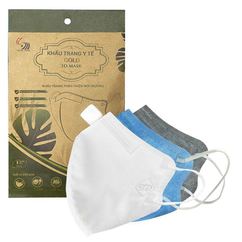 Khẩu trang y tế cao cấp Gold 3D Mask Trường Dương (5c/túi) với thiết 3D thời thường, ôm khít và vừa sát khuôn mặt, giúp bảo vệ toàn hiện, ngăn chặn giọn bắn, bụi mịn PM 2.5, virus và vi khuẩn.