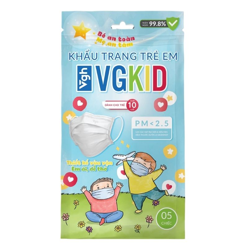 Khẩu trang y tế cho bé 3 lớp VG KID (5 cái/Túi Zip)