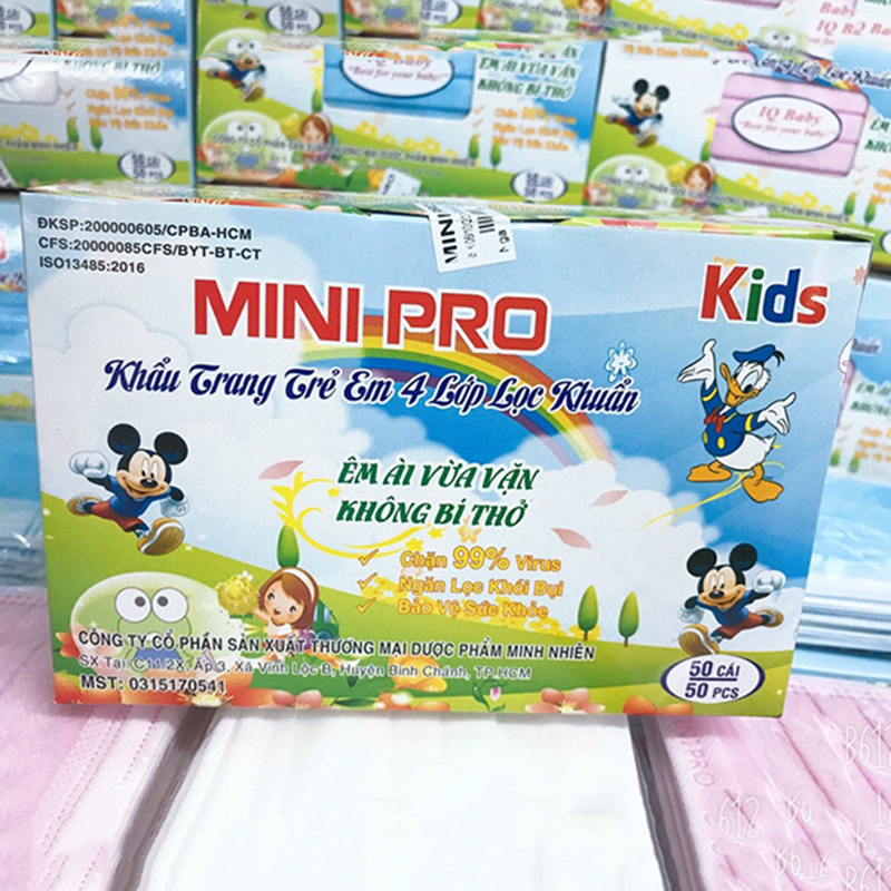Khẩu trang y tế trẻ em Mini Pro Iqbaby 4 lớp đóng gói 50 chiếc/ hộp