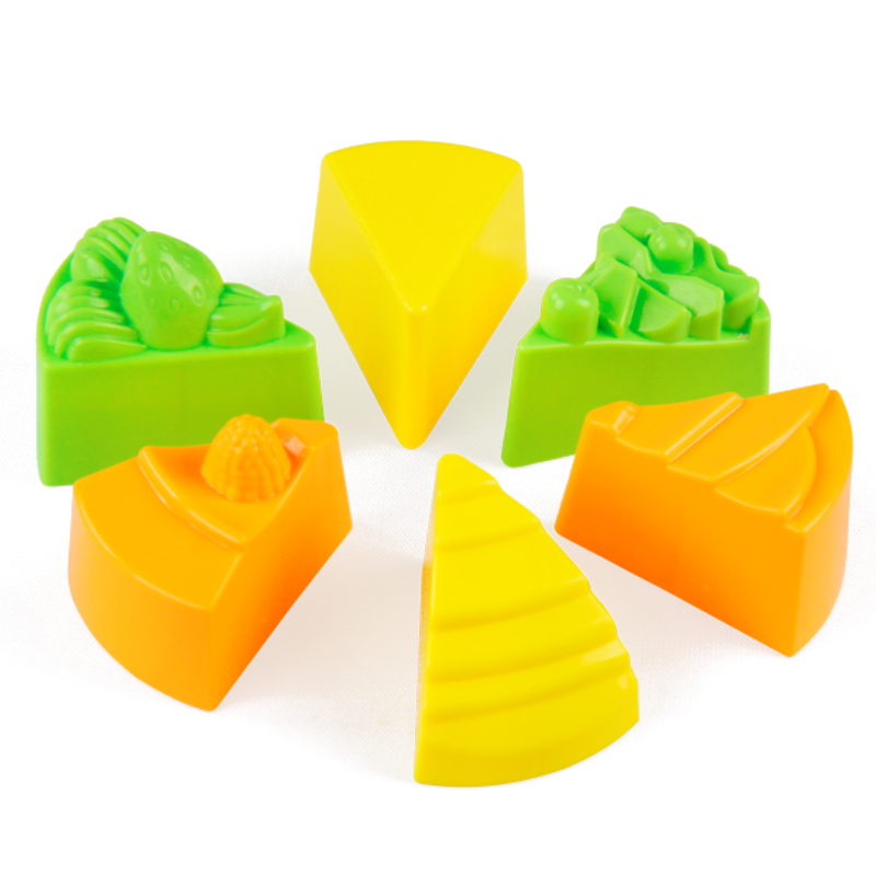 - Bộ gồm 6 khuôn nhựa hình miếng bánh sinh nhật