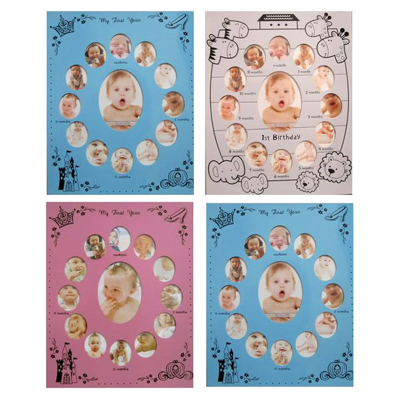 Chạy dọc theo xung quanh khung ảnh là 12 ô tròn có đường kính 1.8” ghi dấu cho 12 tháng phát triển đầu đời của bé.