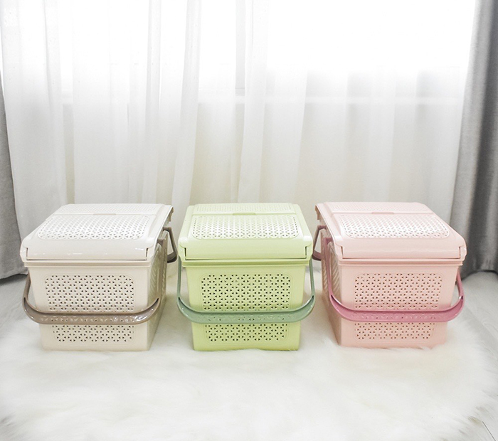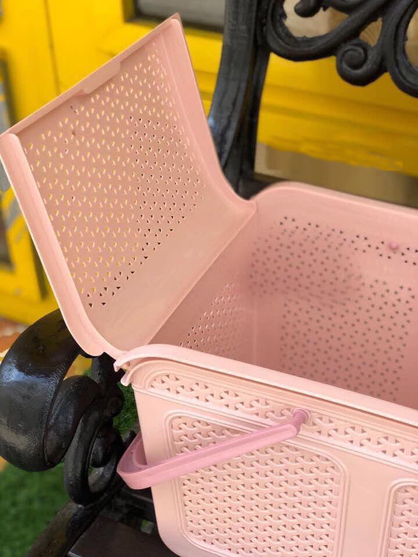 - Nếu các giỏ nhựa đựng đồ khác thường có thanh chắn ở giữa nên khi mở lấy đồ sẽ hơi vướng víu , khó khăn thì mẫu giỏ này thiết kế phần nắp là mở ra 2 bên, giúp thuận tiện cho việc cất cũng như lấy đồ. Hạn chế bụi & đỡ nhòm ngó đồ dùng bên trong.