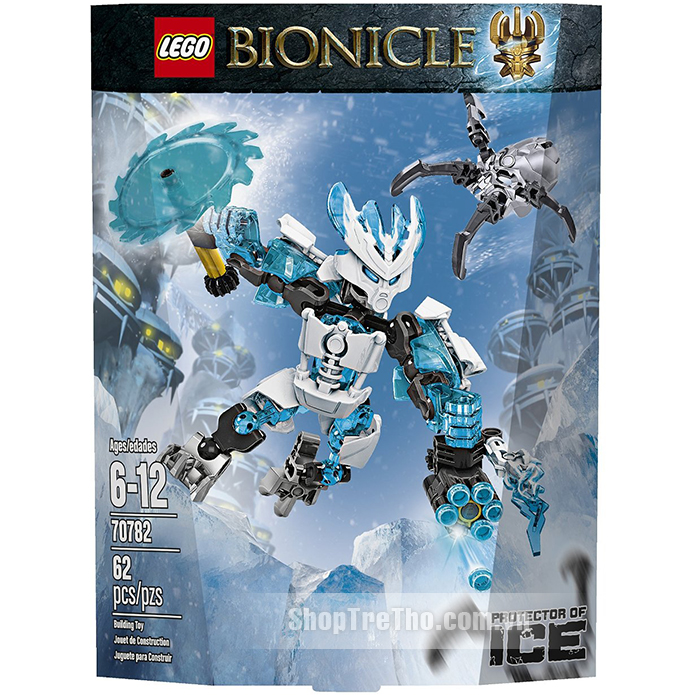 Các em có thể xây dựng hình ảnh gay cấn về cuộc chiến của người hộ vệ băng và yêu tinh bằng 62 miếng ghép có trong bộ Lego Bionicle - Hộ vệ băng 70782 có thể kích thích thị giác giúp các em phân biệt màu sắc tốt hơn.