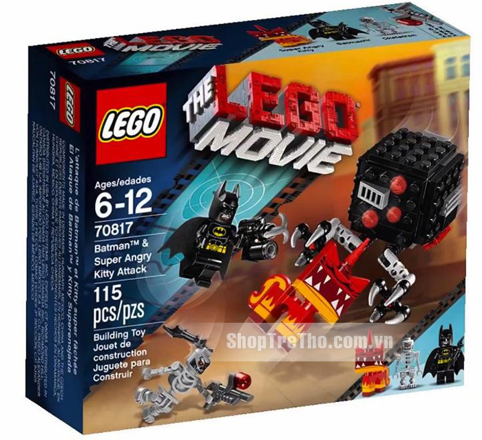 Lego Movie 70817 – Người dơi và siêu mèo giận dữ tấn công - Trong bộ sưu tập Lego Movie lần này, các bé sẽ được sáng tạo cùng người dơi và siêu mèo giận dữ. Các em có thể lắp ráp những siêu phẩm này từ 115 mảnh ghép có trong Lego Movie 70817 – Người dơi và siêu mèo giận dữ tấn công. Bộ mô hình có độ khó phù hợp với trẻ từ 6 đến 12 tuổi. Được làm từ chất liệu nhựa không chứa BPA, sản phẩm tuyệt đối an toàn với sức khỏe của bé.