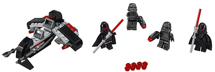Bộ bao gồm 4 nhân vật: 2 Shadow Guards, 2 Shadow Stormtroopers và các vũ khí kèm theo.Chiếc xe vận chuyển quân với ụ súng đôi ở trên nóc…
