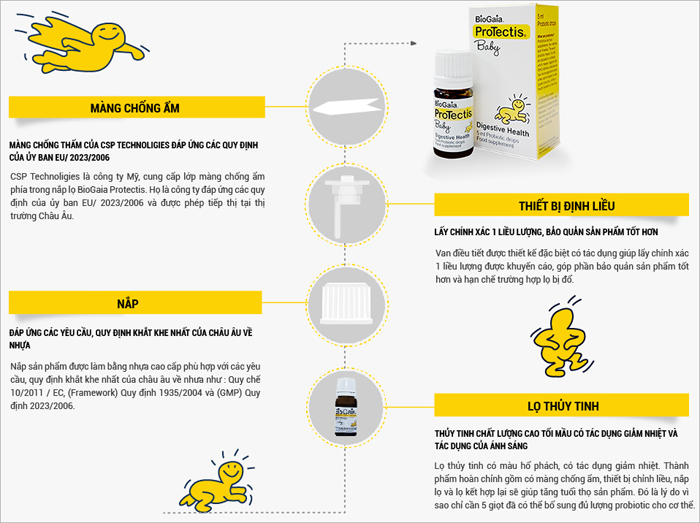 - Men vi sinh BioGaia Protectis được FDA của Mỹ cho phép sử dụng trên trẻ sơ sinh ngay từ 0 tháng tuổi, kể cả trẻ sinh non mới sinh cần chăm sóc đặc biệt vì sự an toàn tuyệt đối và hiệu quả cao. Được Hội Nhi Khoa Châu Âu và WGO khuyến cáo sử dụng ở trẻ sơ sinh để điều trị và dự phòng khóc dạ đề - Colic, cân bằng hệ vi sinh, giảm các triệu chứng không tốt trên đường tiêu hóa.