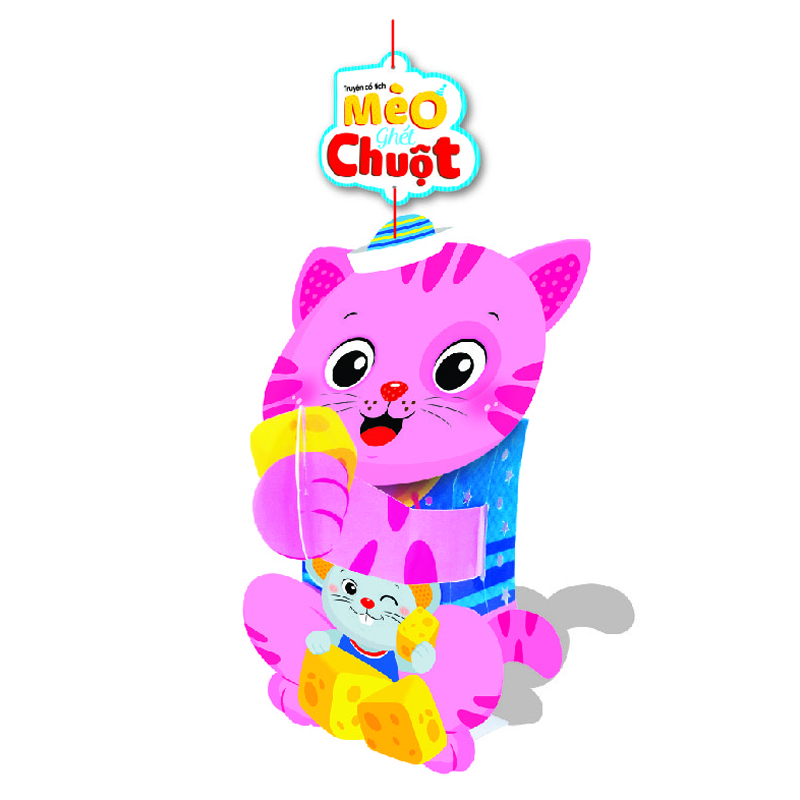 - Thiết kế lồng đèn hình chú mèo màu hồng, có hình ảnh chút chuột bên cạnh