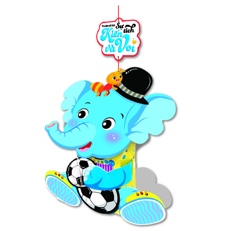 - Thiết kế lồng đèn hình chú voi màu xanh với cái vòi dài, đôi tay đang ôm quả bóng