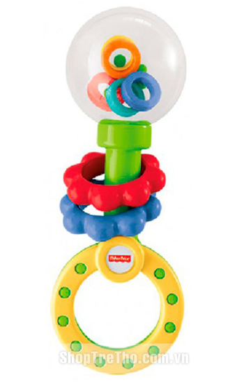 Quả bóng tròn trong suốt chứa những viên kẹo màu xinh xắn. Khi bé rung chiếc lục lạc, các viên kẹo sẽ chạy lên xuống tạo thành những chuyển động thú vị thu hút bé. 2 Vòng tròn trượt lên xuống khiến bé thêm thích thú.Vòng tròn lớn vừa vặn với nắm tay nhỏ của bé.