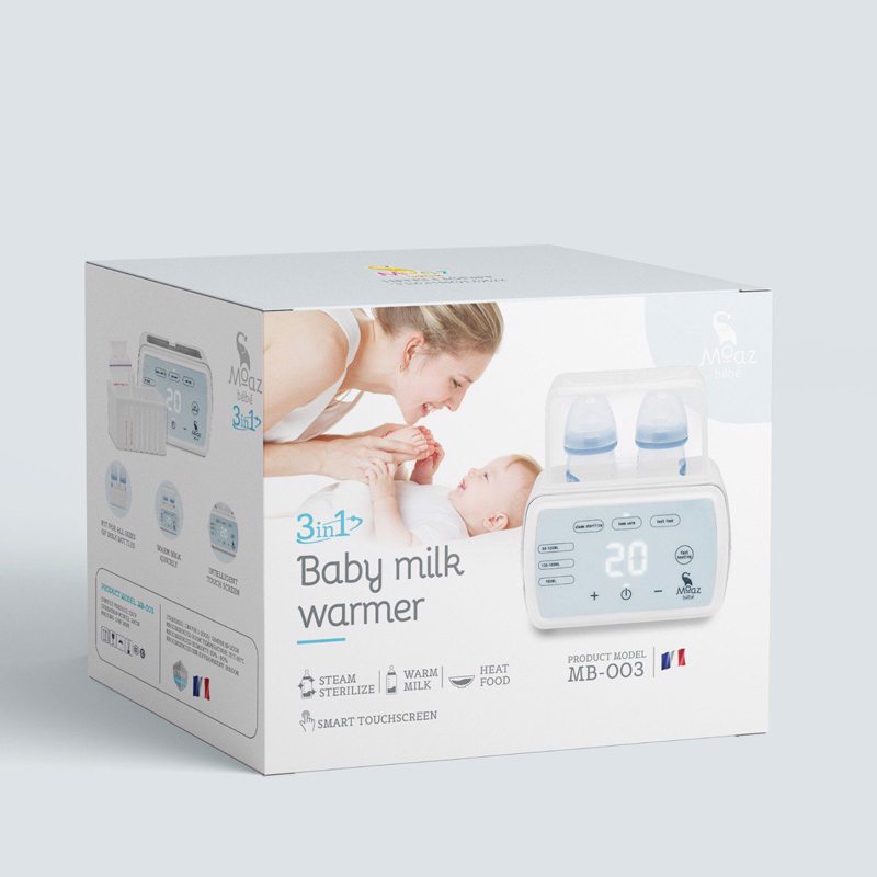 Máy hâm sữa tiệt trùng hai bình Moaz Bebe MB-003 là sản phẩm đa chức năng: hâm sữa, tiệt trùng, hâm nóng đồ ăn dặm cho bé. Với thiết kế màn hình hiển thị chính xác nhiệt độ, khay đựng lớn nên bạn có thể hâm 2 bình sữa cùng lúc, tiện dụng cho các em bé sinh đôi.