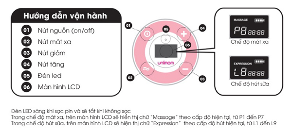- Màn hình LCD hiển thị: Các cấp độ mát xa/hút của máy được hiển thị trên màn hình LCD với thiết kế đẹp mắt.