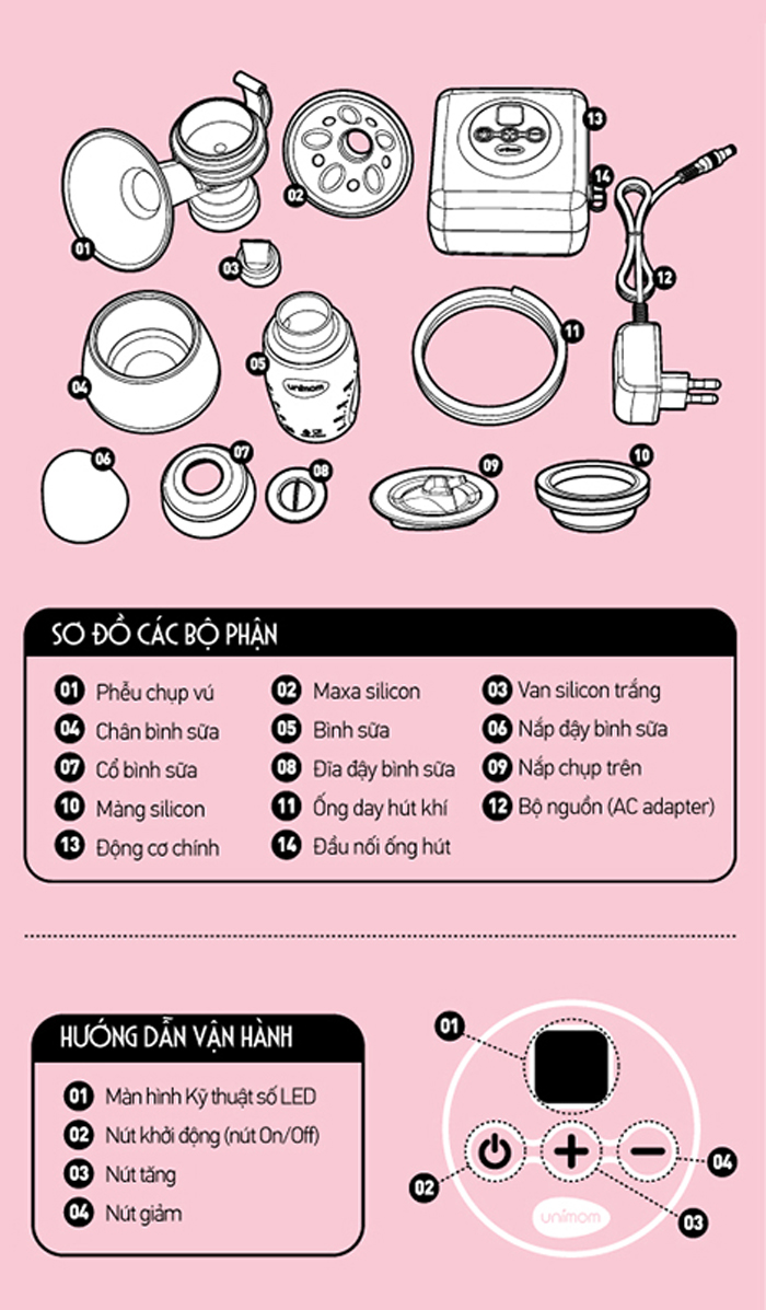 - Lực hút: 100 - 350 mmHg - Mức độ hút : 1 - 7 - Loại: máy hút sữa đôi
