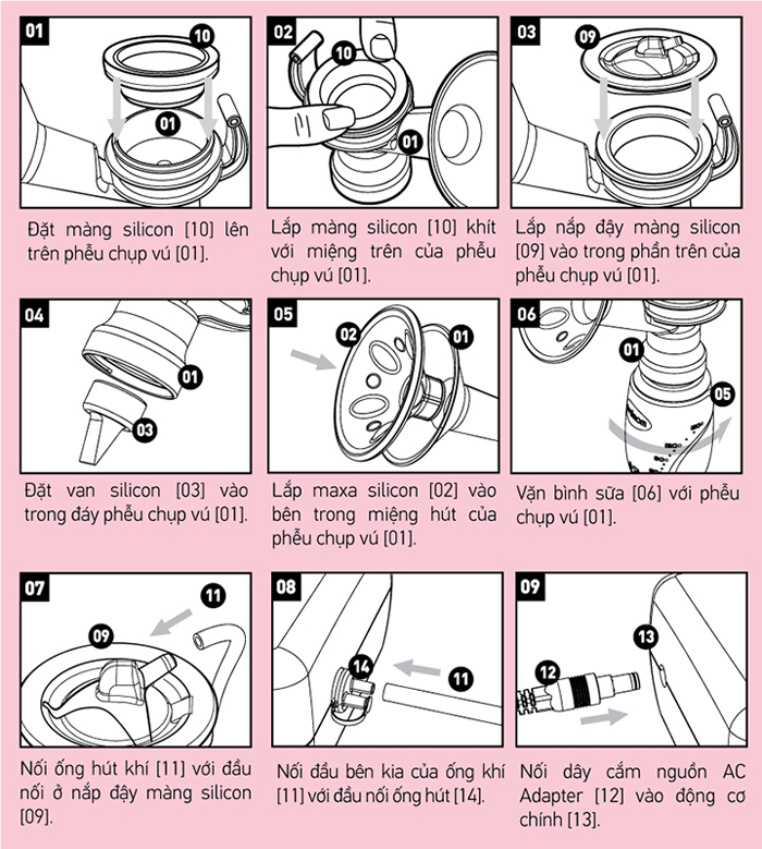 Cách lắp đặt Máy hút sữa điện đôi có pin sạc Premium Allegro UM872002