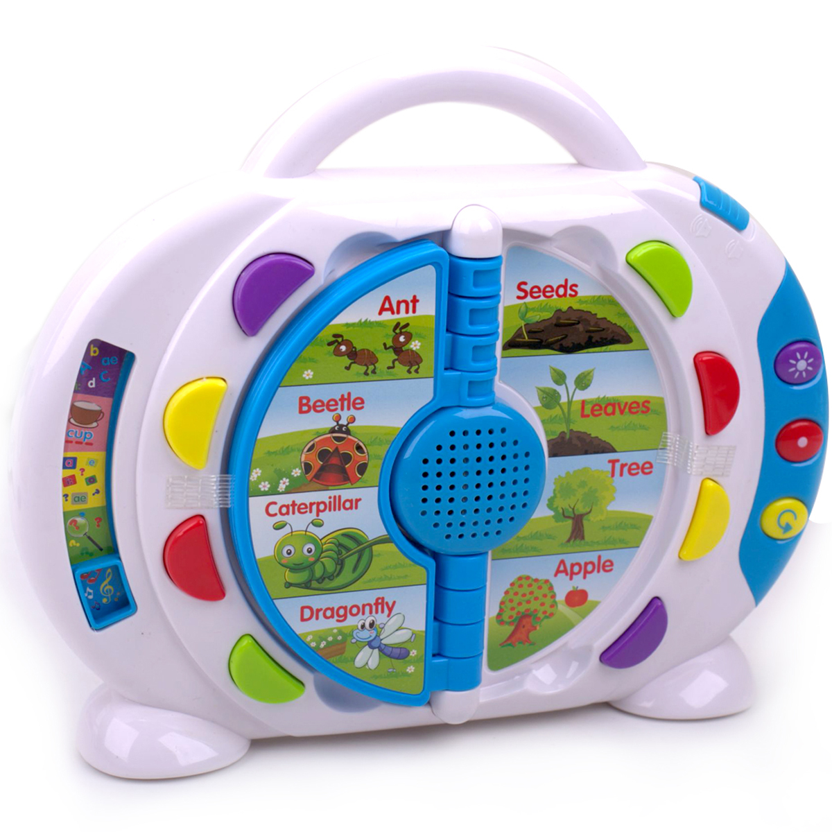 Màu xanh thân thiện cùng hiệu ứng âm thanh vui nhộn sẽ giúp cho con bạn có hứng thú trong học tập.