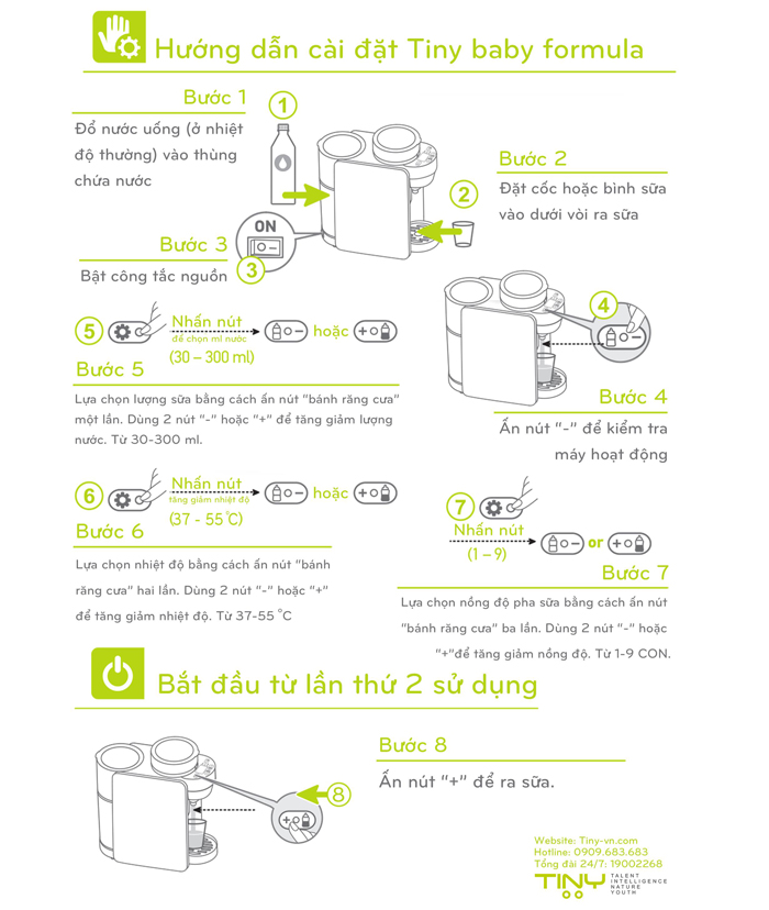 - Với thiết kế nhỏ gọn và đơn giản, máy pha sữa Tiny Baby Formula là một giải pháp hoàn hảo cho những bố mẹ nuôi con bằng sữa công thức.