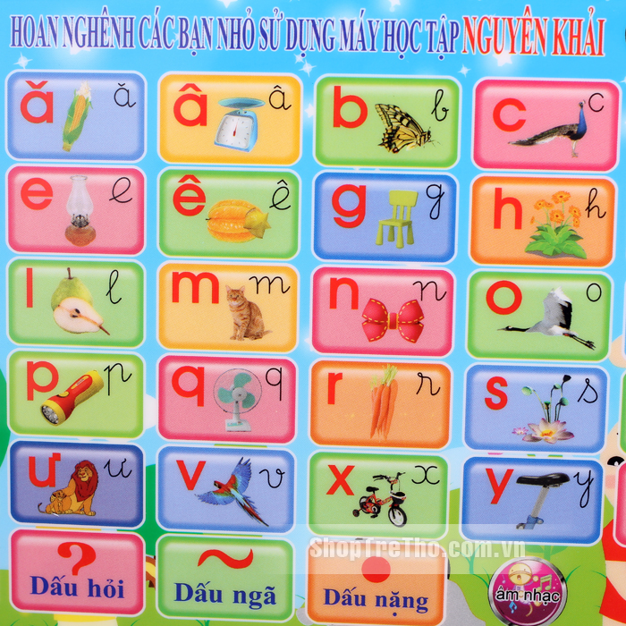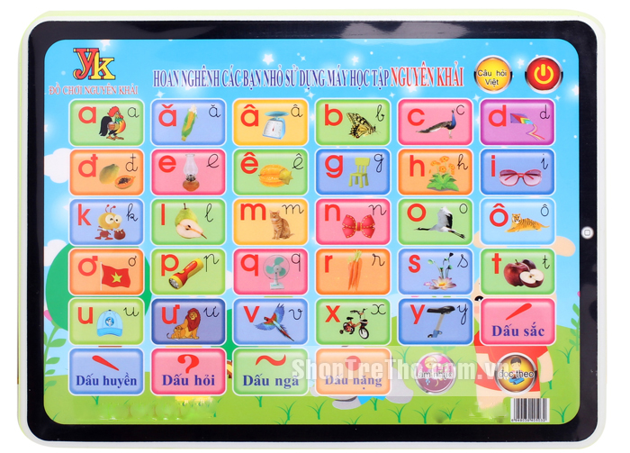 - Máy tính bảng Nguyên Khải sành điệu cho bé tự học chữ cái, có loa ngoài.