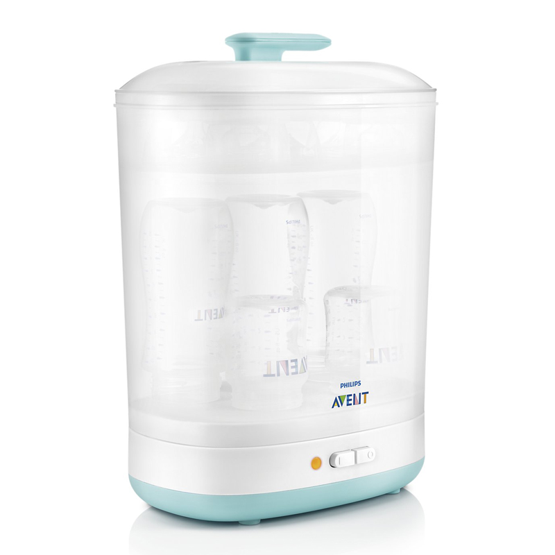 - Máy tiệt trùng dùng hơi nước tự nhiên để khử trùng bình sữa và các sản phẩm khác, tiêu diệt 99,9% các loại vi khuẩn có hại mà không sử dụng hóa chất. Là lựa chọn hoàn hảo, giúp bạn luôn yên tâm bình sữa và các vật dụng khác luôn được khử trùng.
