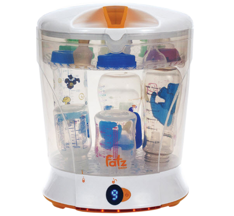 - Mẹ có thể sử dụng máy tiệt trùng bình sữa Fatzbaby cho 7 bình sữa cùng lúc với thời gian tiệt trùng nhanh chóng chỉ sau 9 phút. Sản phẩm có thể được giữ trogn vòng 3 giờ sau khi tiệt trùng ở trong máy.