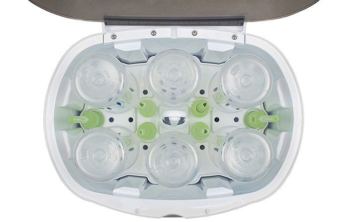 - Tiệt trùng 1 lúc 6 bình sữa nhanh chóng chỉ trong 12 phút, tiêu diệt mọi loại vi khuẩn nhanh chóng.