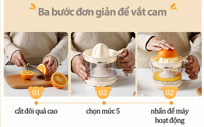 - Chỉ với một chiếc máy vắt cam nhỏ xinh chính hãng Bear CZJ-A04B1 cả gia đình bạn sẽ được tận hưởng những ly nước cam thơm ngon mỗi ngày.