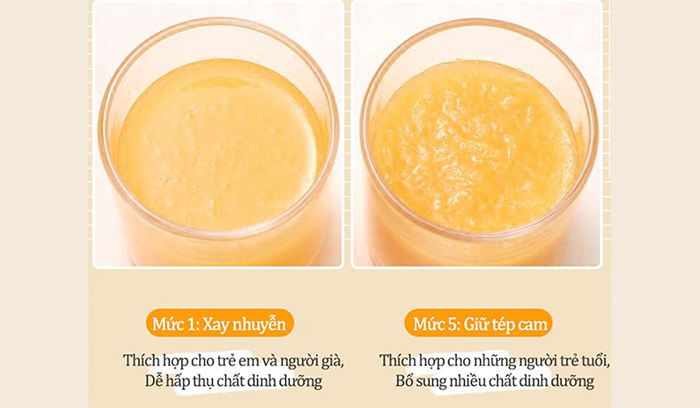 - Đặc biệt, sản phẩm tích hợp đến 5 chế độ vắt khác nhau, giúp bạn chọn lựa vắt cam từ vắt kiệt lấy mỗi nước, đến giữ nguyên những tép cam căng mọng vô cùng tiện lợi. Tận dụng được tối đa dinh dưỡng từ ly nước cam mình sử dụng mỗi ngày.
