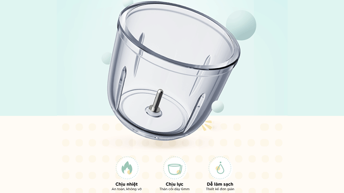 - Với chất liệu thủy tinh borosilicate, cối xay có thể chịu nhiệt, chịu lực cực kì an toàn cho bé.