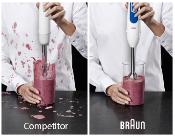 Công nghệ Splash Control chống văng thực phẩm khi xay của Braun MQ 3035 Sauce, kể cả khi bạn xay trong chén bát hay tô