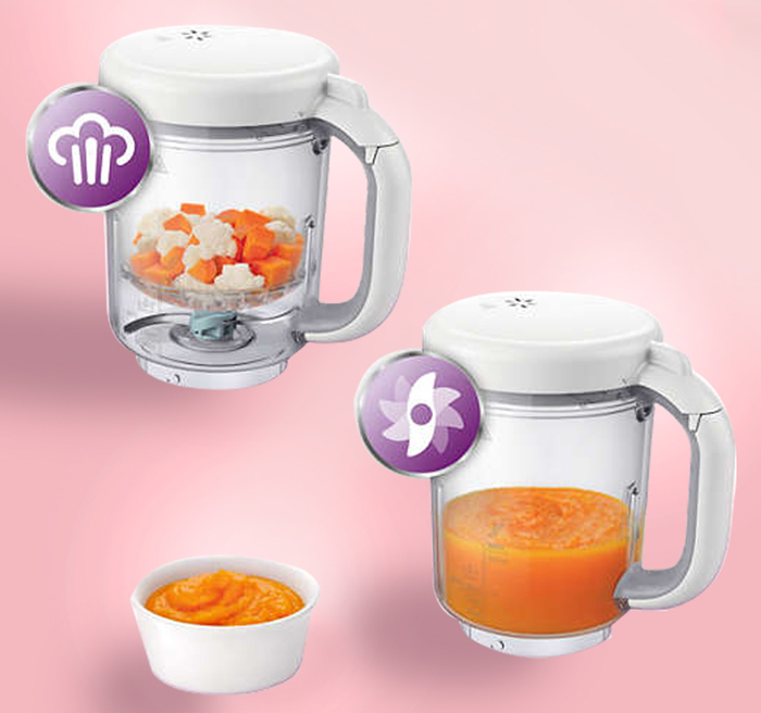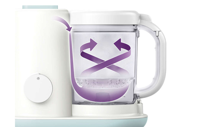 - Máy hấp và xay 2 trong 1 giúp việc chế biến và cho bé ăn trở nên dễ dàng. Hãy bắt đầu bằng cách hấp nguyên liệu, sau đó xay tới độ đặc mong muốn và cho bé ăn.
