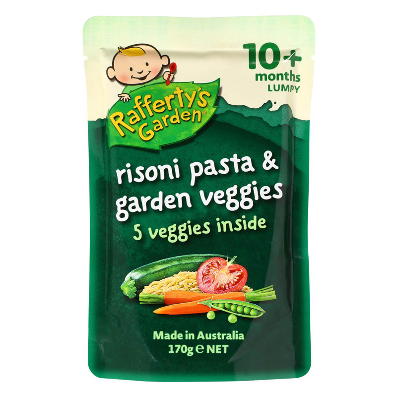 Mì ống Risoni & các loại rau củ Rafferty's Garden (10m+) là thức ăn dạng không xay nát, giúp bé tập nhai cũng như cảm nhận được vị tự nhiên của món ăn. Sản phẩm được đóng túi tiện lợi, mẹ có thể cho bé ăn ngay hoặc đun nóng để món ăn hấp dẫn hơn.