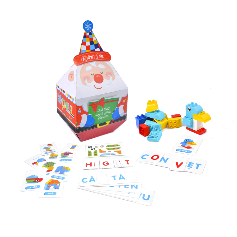 Món quà hạnh phúc cho con - Ngôn ngữ sáng tạo ngoài 15 khối để ghép đồ chơi còn kèm 26 chữ cái Tiếng Việt, để bé có thể vừa chơi vừa học cách nhận diện mặt chữ, đọc tên. Sản phẩm được làm từ chất liệu an toàn, sẽ là món quà Giáng Sinh ý nghĩa dành tặng cho bé.