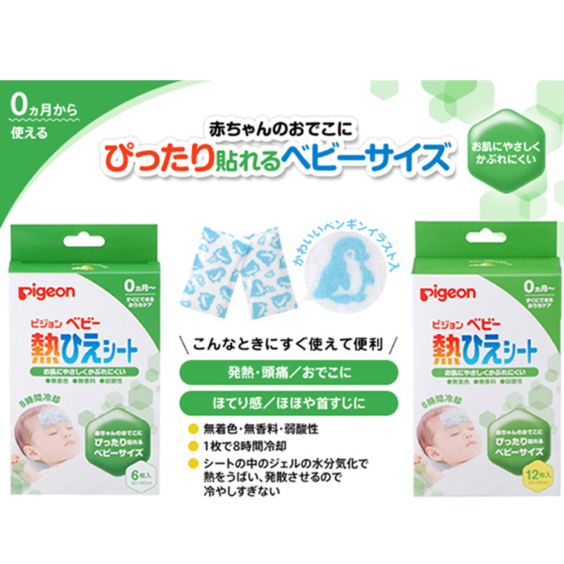 Hạ sốt của Pigeon dùng để đắp lên trán của bé khi bé bị sốt nhằm giúp bé nhanh chóng hạ sốt. Độ ẩm trong gel hút lấy cái nóng, bốc hơi, vì vậy nhiệt tuôn loại, không quá lạnh.
