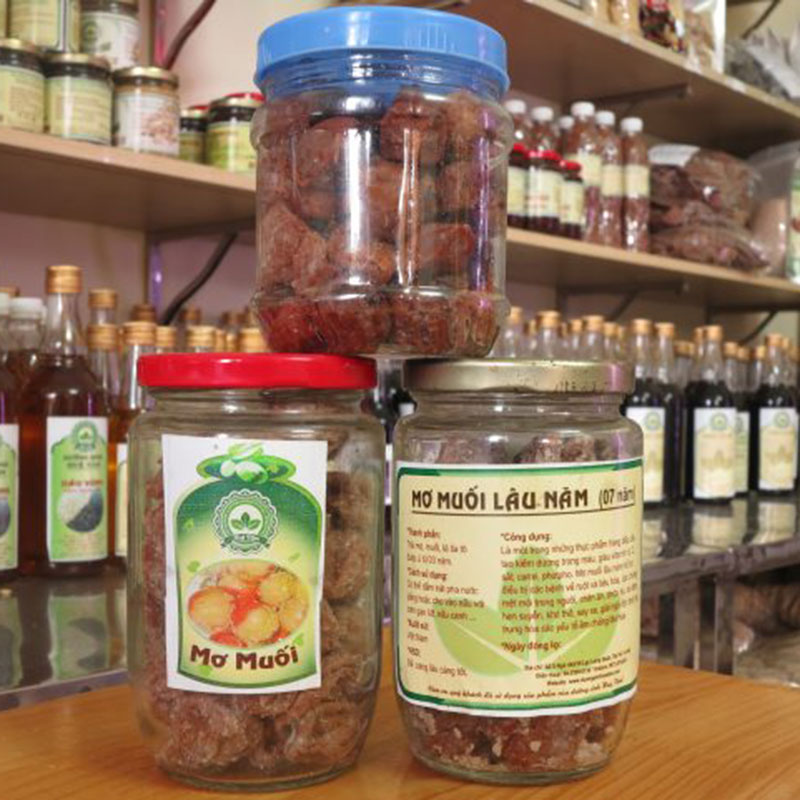 Thành phần: Trái mơ, muối, lá tía tô được ủ từ 3 năm.