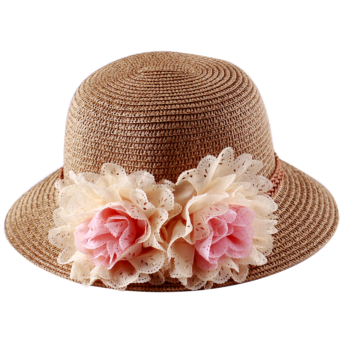 Mũ bé gái đính hoa đôi màu trắng kaki