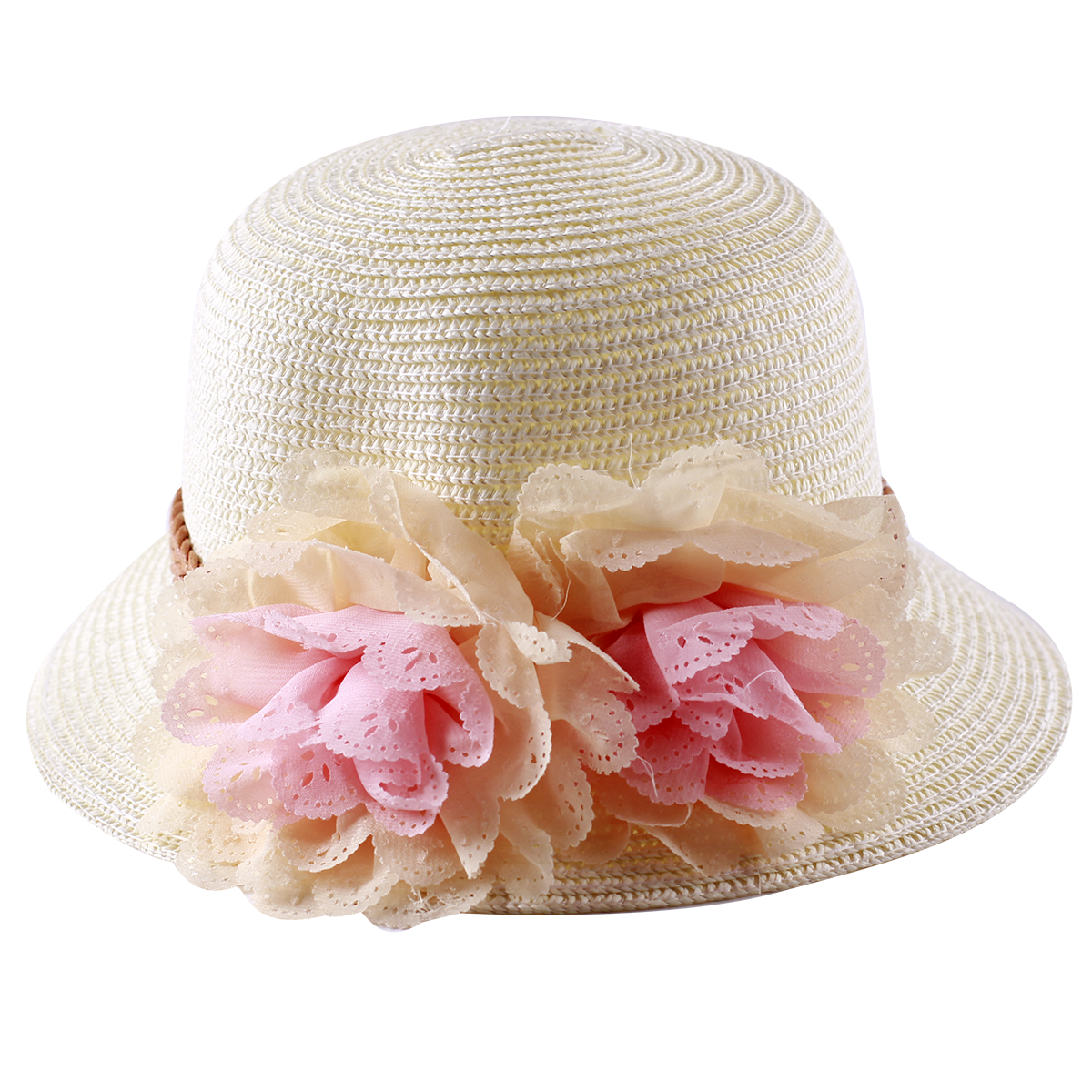 Mũ bé gái đính hoa đôi màu trắng sữa
