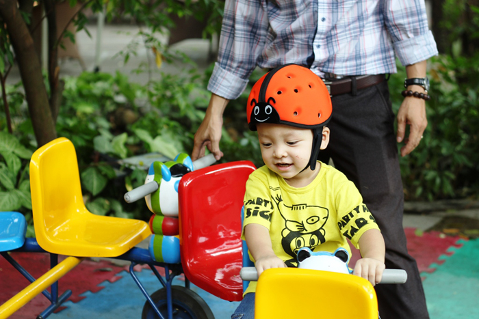 Mũ có tác dụng bảo vệ an toàn cho bé khi vui chơi, di chuyển cùng bố mẹ
