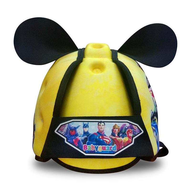 Mũ bảo vệ đầu cho bé BabyGuard in hình siêu anh hùng với đệm êm ái dày 1,5 cm với độ hút ẩm cao vừa an toàn vừa không làm bé bị đau, hay bị hầm hơi. Vật liệu siêu nhẹ với trọng lượng 100 gr, không đè nặng lên đầu và cổ bé. Sản phẩm đã kiểm tra an toàn tại Trung tâm Kỹ thuật Tiêu chuẩn Đo lường Chất lượng 3 (QUATEST 3) đảm bảo an toàn cho trẻ.