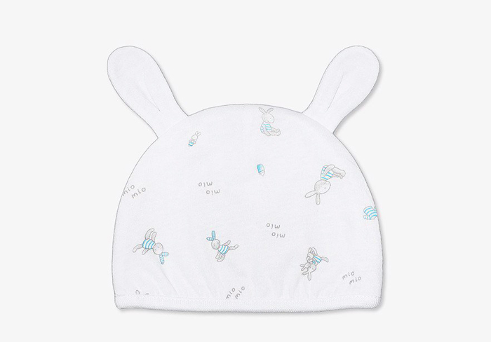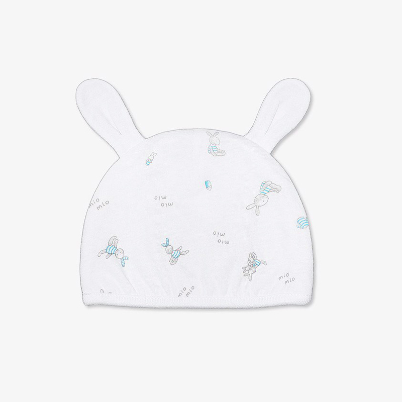 Mũ chụp sơ sinh Miomio in hình thỏ nổi bật với chất vải cotton mềm mại, thấm hút mồ hôi, giúp bảo vệ thóp của trẻ khỏi "gió máy" khi đi ra ngoài, đi chơi. Thiết kế kiểu mũ chụp với chất vải không quá dày nên phù hợp để mẹ sử dụng cho trẻ suốt 4 mùa.