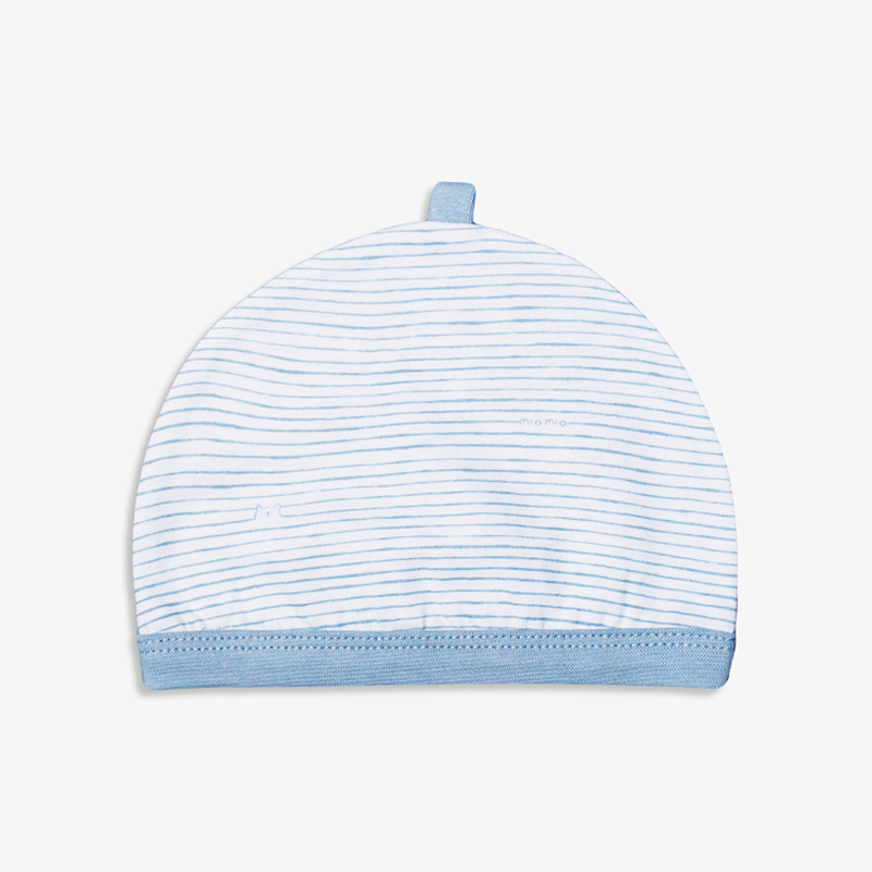 Mũ chụp sơ sinh Miomio kẻ sọc với chất vải cotton mềm mại, thấm hút mồ hôi, giúp bảo vệ thóp của trẻ khỏi "gió máy" khi đi ra ngoài, đi chơi. Thiết kế kiểu mũ chụp với chất vải không quá dày nên phù hợp để mẹ sử dụng cho trẻ suốt 4 mùa.
