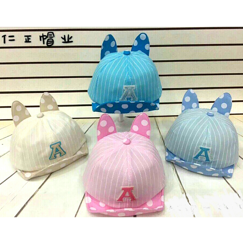 - Kiểu mũ lưỡi trai kẻ sọc với tai mèo phía sau, tăng nét đáng yêu cho bé