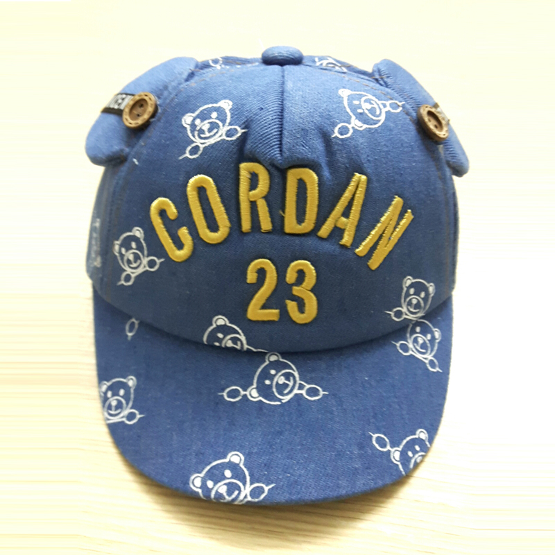 - Họa tiết thêu chữ với gam màu xanh đẫm mang đến nét khỏe khoắn cho bé khi đội