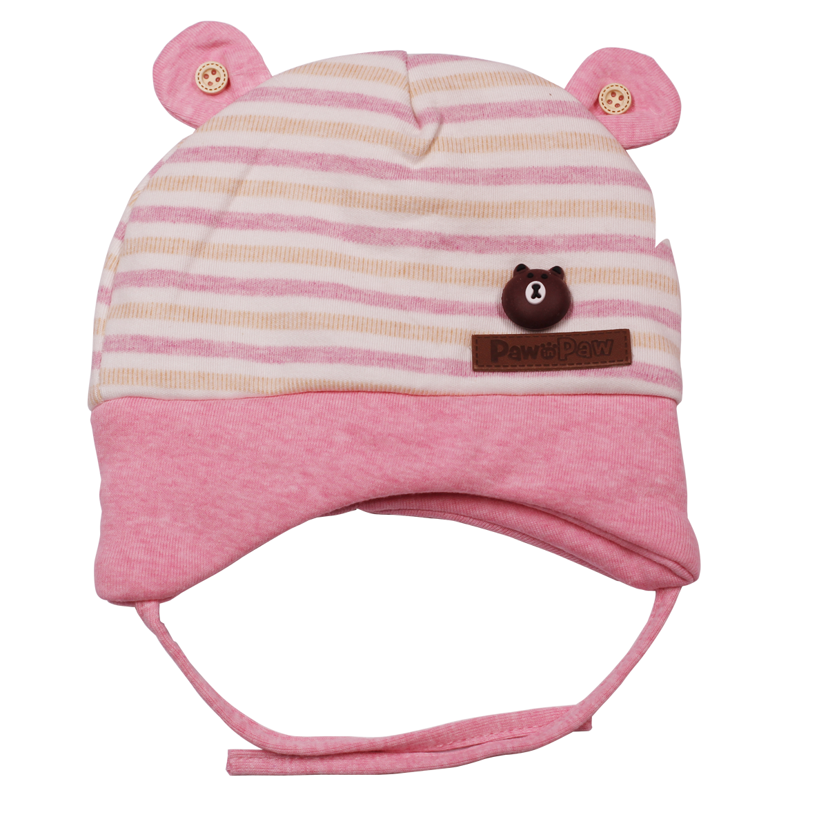 - Kiểu mũ có quai, họa tiết kẻ sọc, không chỉ giữ ấm đầu và tai cho bé mà còn tăng thêm nét dễ thương cho bé
