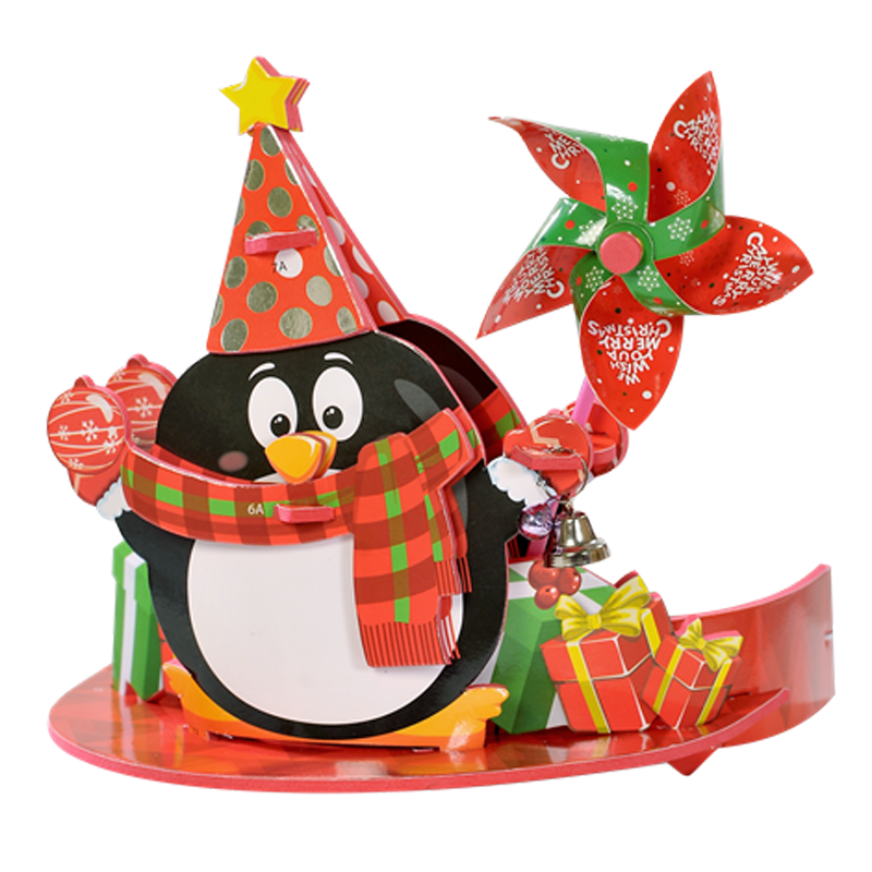 Chú chim cánh cụt đã đội nón và quấn khăn màu đỏ để chào đón Giáng Sinh, bé cũng hãy đội mũ 3D ngộ nghĩnh nhé