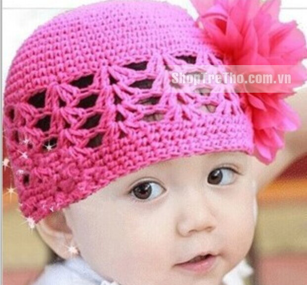 Nón đan bông bé gái