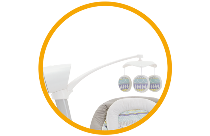 - Để tăng thêm sự thích thú, nôi đưa Joie Serina Swivel còn có thêm thanh đồ chơi xoay phía trên đầu để bé khám phá.