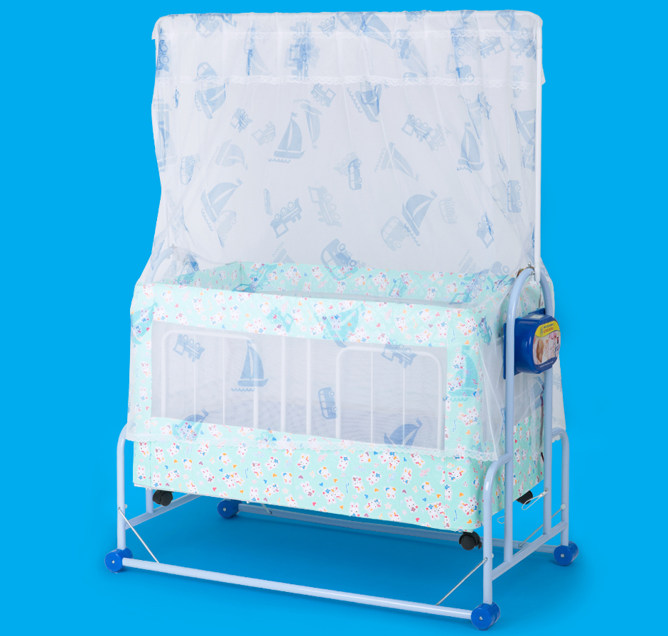 Nôi nằm với vách bằng lưới kết hợp sắt chắc chắn, thiết kế cao, rộng hơn cho bé nằm hoặc chơi thật thoải mái