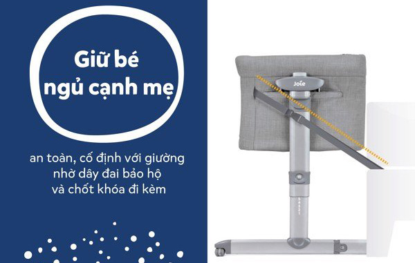 - Ba mẹ có thể điều chỉnh nâng hoặc hạ thành nôi dễ dàng chỉ với một tay, giúp mẹ dễ dàng quan sát và chăm sóc bé ngay bên cạnh giường của mình.