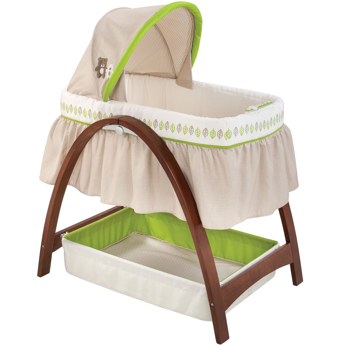 Nôi rung Summer SM26070 Bentwood có đệm êm ái và mái che để tránh chói cho bé nằm thoải mái hơn