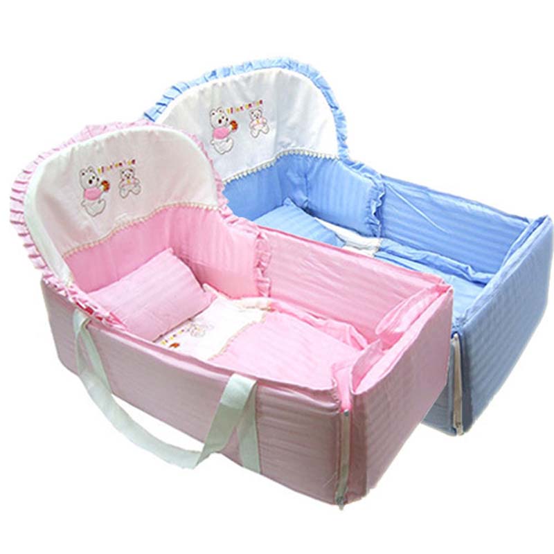 Nôi trẻ em xách tay có nhiều mầu sắc và kiểu dáng rất đáng yêu.