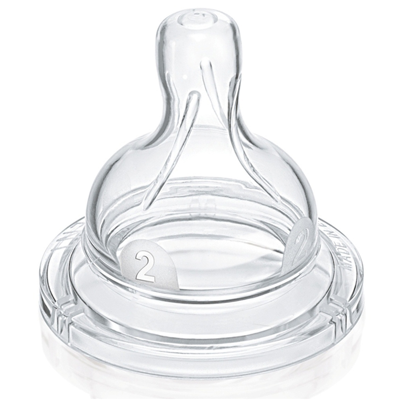 Núm ty Avent số 2 cổ rộng Silicone BPA free với thiết kế đặc biệt rất mềm mại và luôn cho bé được cảm giác thoải mái như đang bú mẹ. Hệ thống van chống sặc kép trên ty giúp bé bú bình thuận tiện mà không lo đầy hơi. Sản phẩm được làm từ chất liệu Silicone an toàn không BPA.